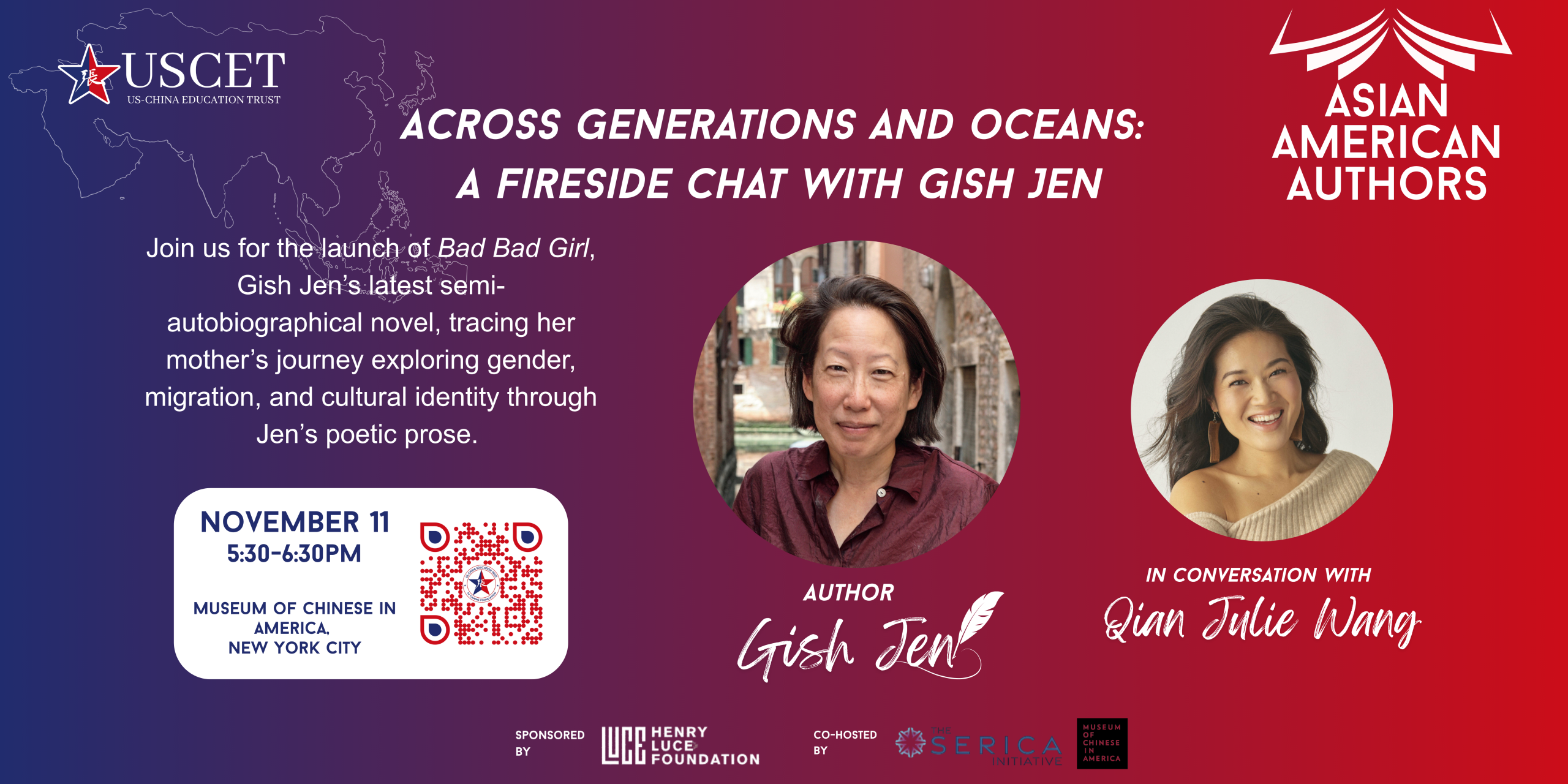 On Tuesday, November 11, join USCET, the Serica Initiative, and the Museum of Chinese in America (MOCA) for a book launch for Bad Bad Girl, the latest semi-autobiographical novel by Gish Jen. The book traces the remarkable life of Jen’s mother, who was born into a wealthy Shanghai family in 1925, educated in Catholic schools, and later built a new life in the United States. Jen’s poetic prose explores gender, migration, and cultural identity across generations. With its blend of humor and poignancy, Bad Bad Girl offers a unique lens on 20th-century history and the complexities of the mother-daughter relationship. This engagement promises a rich conversation about memory, heritage, and the intertwined narratives of China and America.