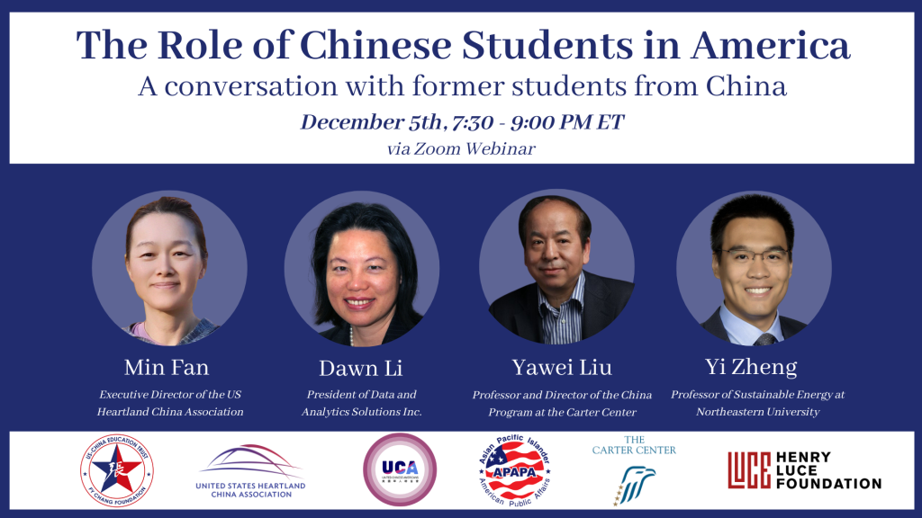 On December 5, USCET hosted a webinar on The Role of Chinese Students in America, featuring four distinguished Americans who arrived
