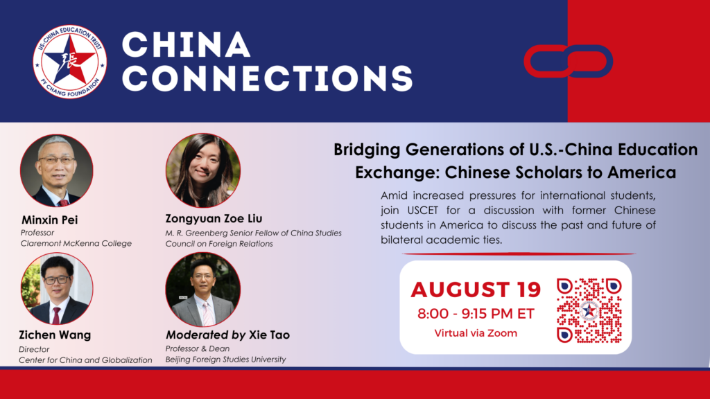 On July 16, USCET hosted the latest installment of our China Connection series, “Bridging Generations of U.S.-China Education Exchange: American