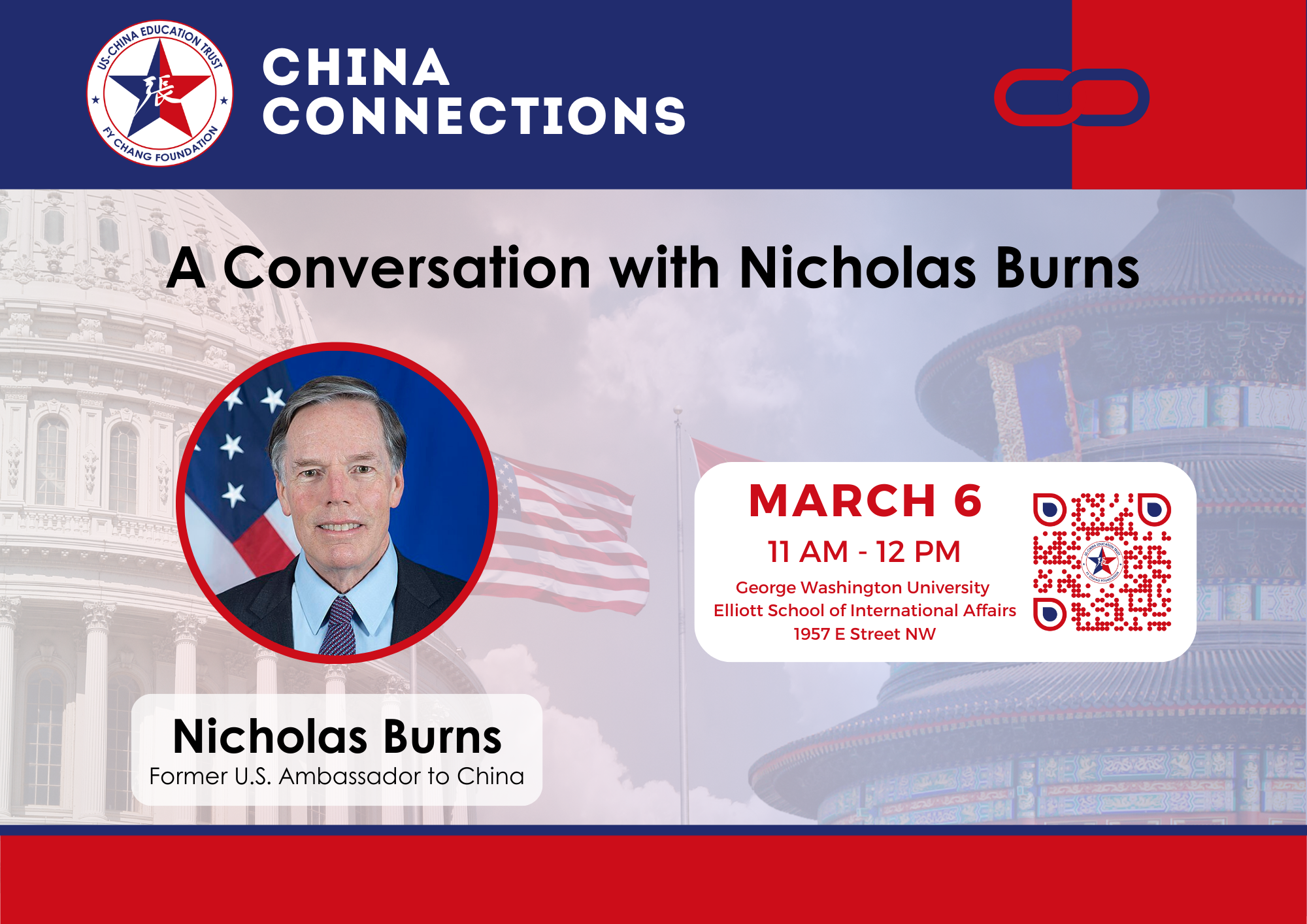 On March 6, 2026, from 11 am – 12 pm ET, join USCET for a conversation with Nicholas Burns, U.S. Ambassador to China from 2022 to 2025.