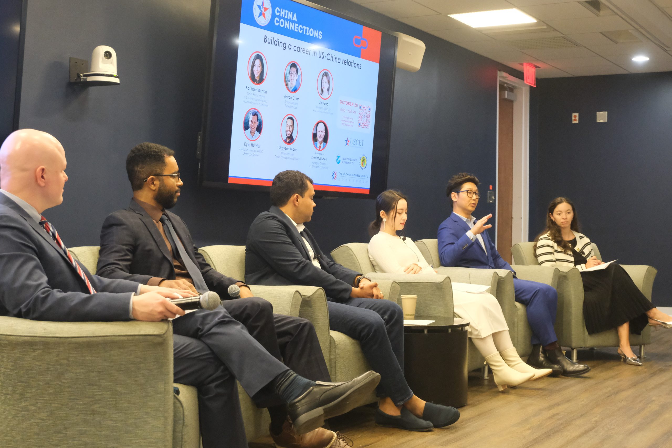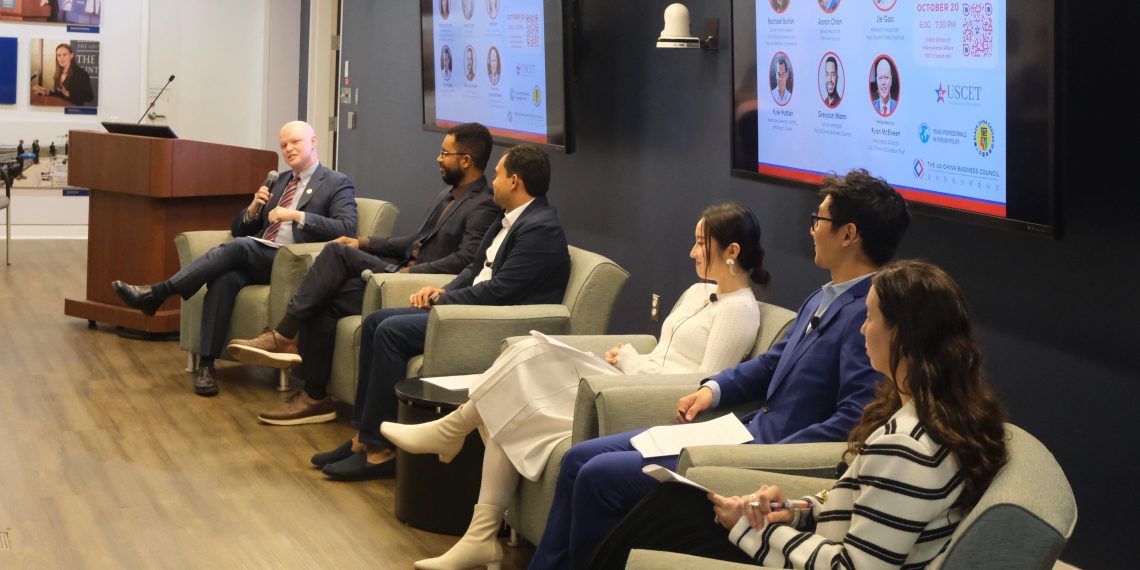 On October 20, USCET hosted a panel discussion as part of its China Connections series that brought together five young professionals working at the intersection of U.S.–China relations. Moderated by USCET Managing Director Ryan McElveen, the event explored how each speaker entered the field and adjusted their trajectories, and the insights they’ve gleaned along the way. The panelists – Rachel Burton, Aaron Chan, Jie Gao, Kyle Hutzler, and Greyson Mann – shared candid reflections on the evolving opportunities and challenges in building a China-focused career today.
