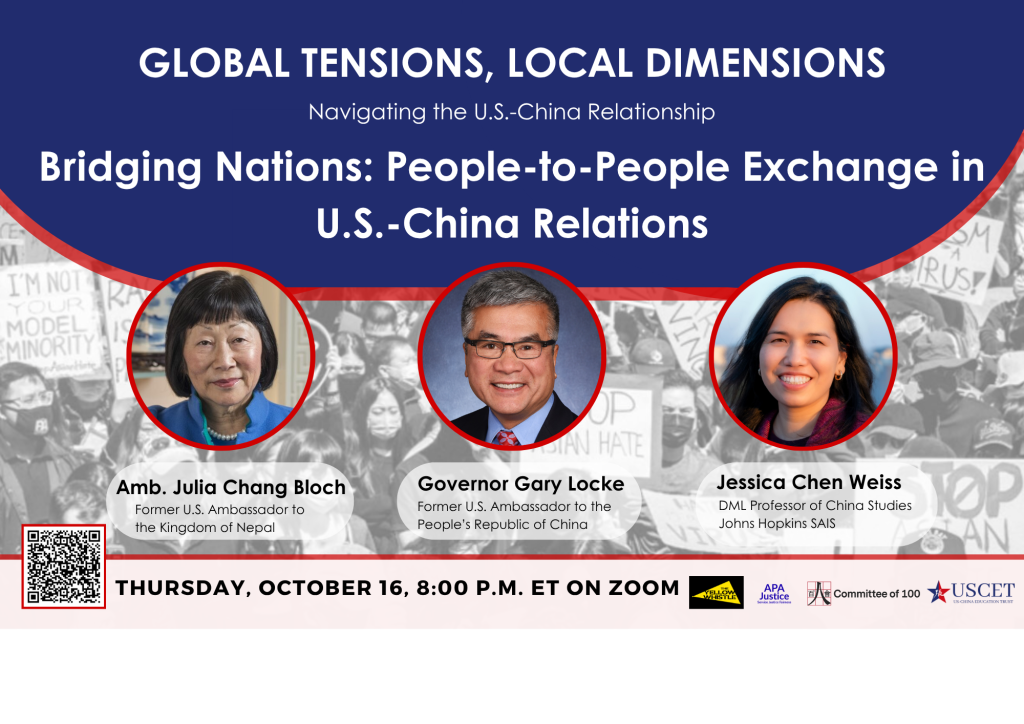 Join the US-China Education Trust, APA Justice, and Committee of 100 on Thursday, October 16, 2025, at 8:00 p.m. ET for an expansive discussion of these topics with two distinguished Asian American ambassadors — Ambassador Julia Chang Bloch and Governor Gary Locke – whose personal journeys and family histories bridge both nations. They will be joined in dialogue by Jessica Chen Weiss, David M. Lampton Professor of China Studies at Johns Hopkins SAIS.