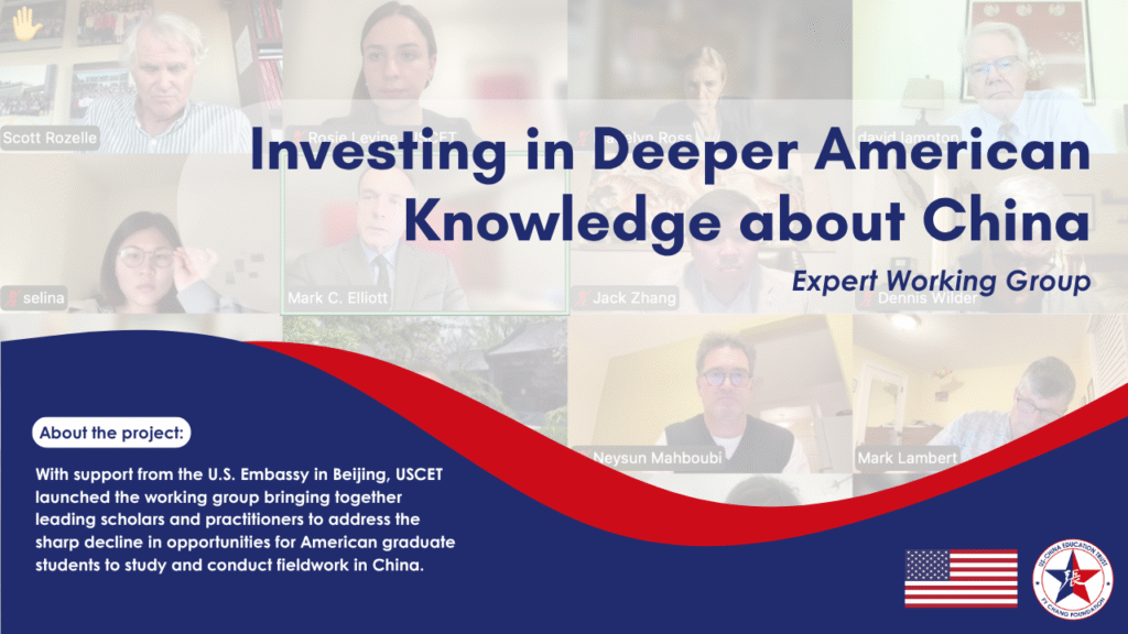 The US-China Education Trust, with support from the U.S. Embassy in Beijing, launched the working group “Investing in Deeper American Knowledge about China” to address the sharp decline in opportunities for American graduate students to study and conduct fieldwork in China. Bringing together leading scholars and practitioners, the project seeks to advance U.S.-China educational engagement and produce concrete policy recommendations for both governments.